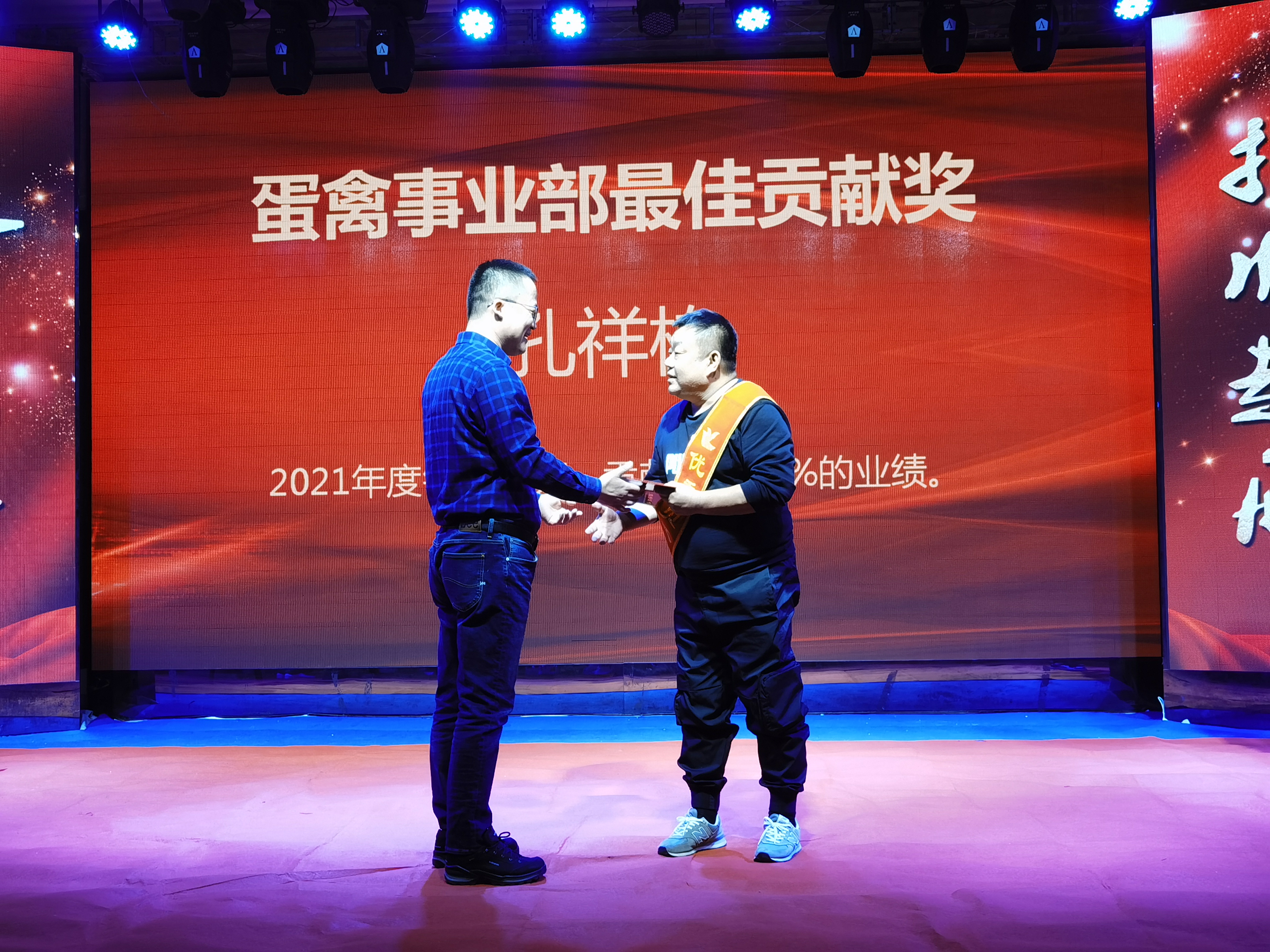 李榮久獲得年度銷售亞軍,2021年他和技術(shù)部李總服務(wù)了錦州周邊10余個(gè)大型養(yǎng)殖場(chǎng),無(wú)數(shù)個(gè)星辰雨夜,多少次寒風(fēng)冷雪都有著他們的身影的穿梭。精誠(chéng)所至,金石為開,他用拼搏精神再次創(chuàng)造了年度銷售的奇跡。公司總裁王鐵良為獲獎(jiǎng)?wù)?/span>頒獎(jiǎng)。
